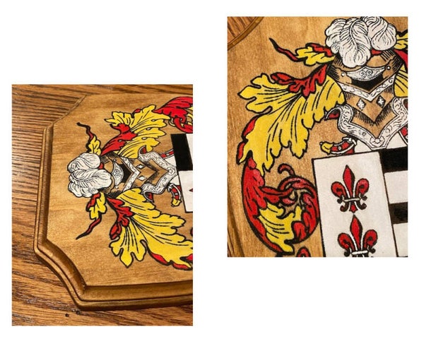 Makes a great, personalized Christmas or birthday gift! Three sizes to choose from. Family crests are laser engraved, then hand painted and stained. Backing can be added for easy hanging.