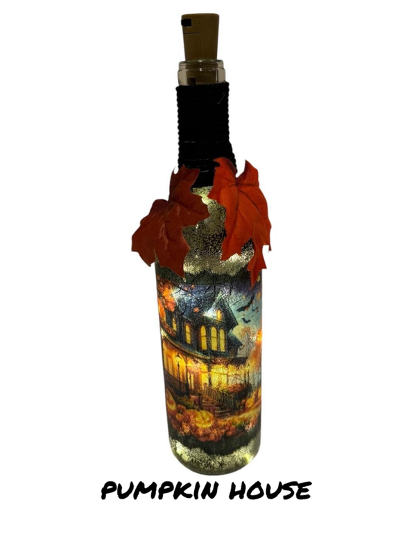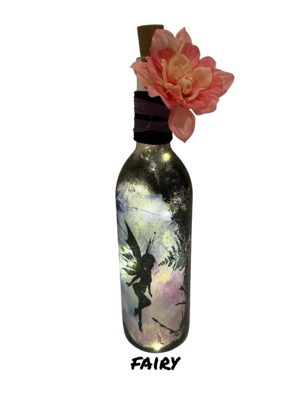 Lighted bottle lamps! Subtle lighting. Choose from any of the shown designs or contact me for your own personal design!