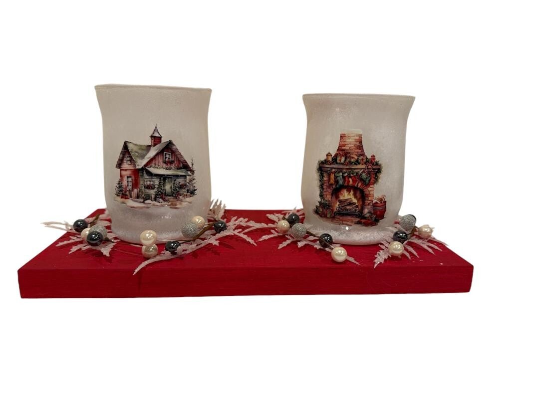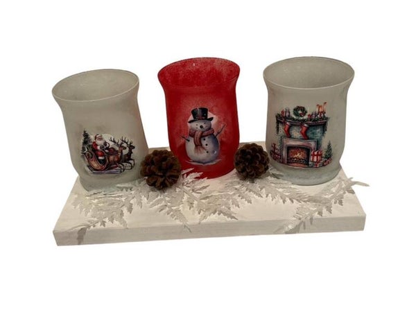 Christmas candle holders. Choose from two or three candle holders. Each comes with a battery operated candle.